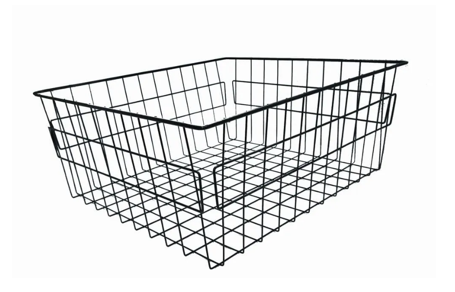 Корзина выдвижная 60IV (555х485х200), в модуль 600 мм, антрацит, без направляющих — вид гардеробного наполнения, металлический сетчатый контейнер для хранения тканевых изделий, размещаемый в мебельном модуле. Корзина крепится к боковинам, выдвигается из шкафа и задвигается в него посредством направляющих.