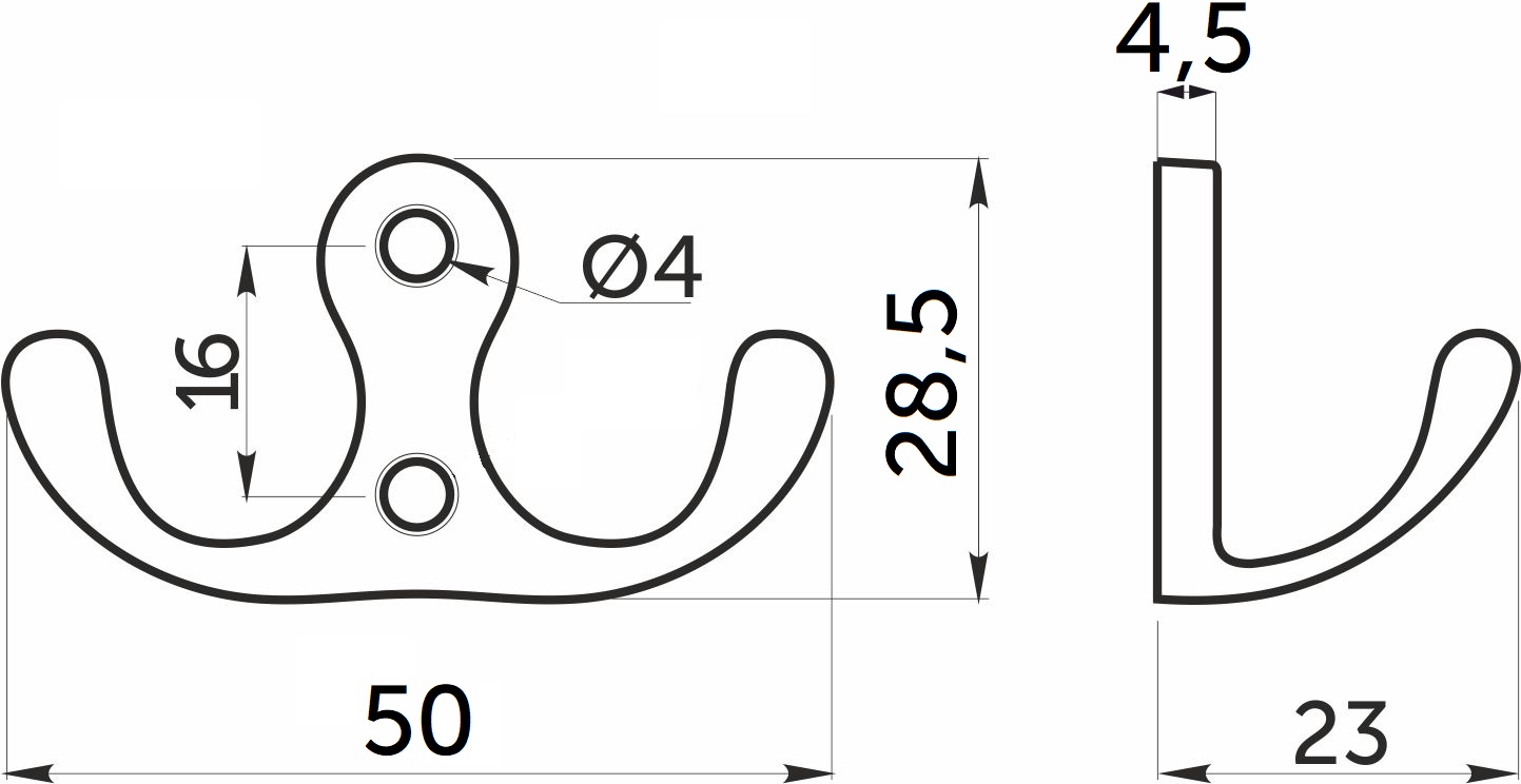 Крючок меб. двухрожковый мет. WP13 черный AKS 69606