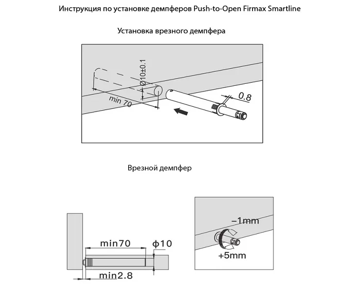 Толкатель FRM0093/1.41 Push-Open идеально гармонирует с петлями Firmax Smartline без доводчика, ввиду чего открывание и закрывание фасада возможно без использования мебельных ручек. Благодаря скрытому типу крепления толкатель будет эстетично смотреться во внутреннем фасаде любого современного интерьера, а качество механизма обеспечивает удобное и функциональное использование.