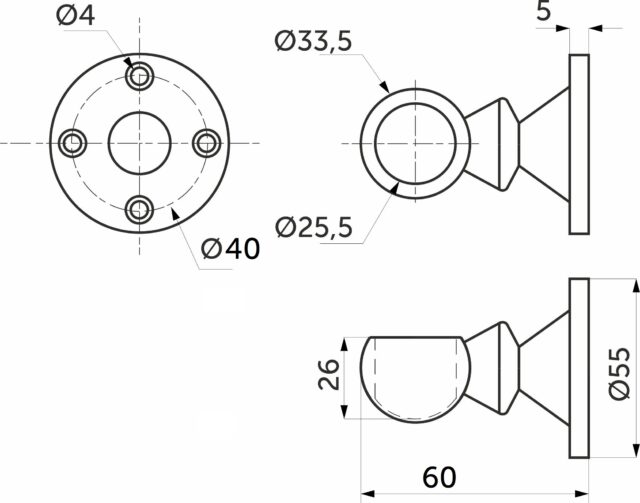 Используются для фиксации трубы d25 параллельно поверхности. Крепление устанавливается в торце трубы. При длине трубы более 1,5 метров рекомендуется дополнительно установить крепление дистанционное пр...