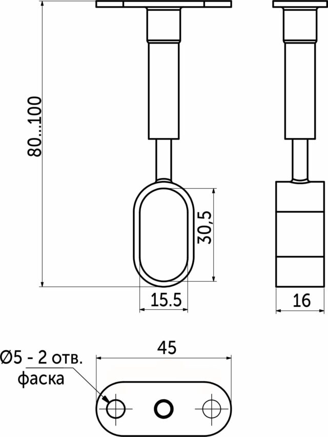 Держатель дистанционный проходной трубы овальн. 30*15 (935) регулируемый, черный AKS 113972