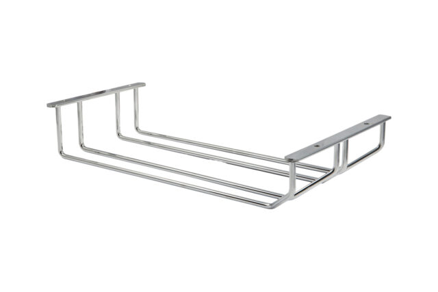 Подвеска крепится саморезами на горизонтальную поверхность, на прутьях размещаются бокалы (ножками вверх) Ширина (B, мм): 210 Цвет: Хром Длина (L, мм): 340 Высота (H, мм): 65 Бренд: AKS