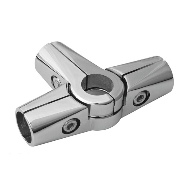 R44 Держатель (TH008+TH007) — соединитель четырех труб диаметром 25 мм, включающий в себя муфты, собирающиеся в единую конструкцию при изготовлении торгового оборудования.
