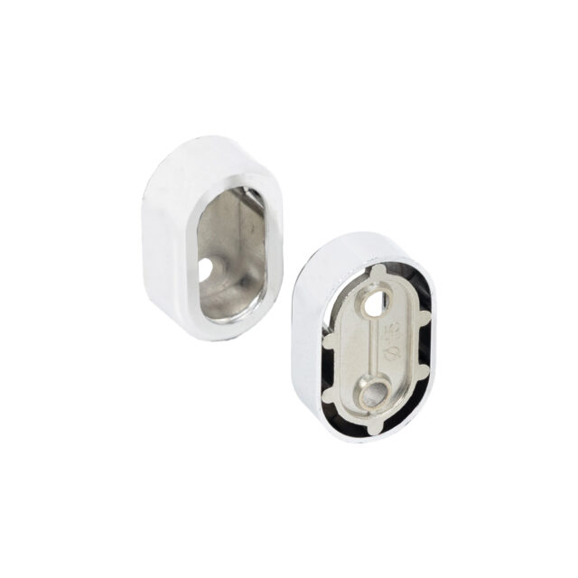 Держатель состоит из двух частей: штангодержатель и декоративная заглушка. Предназначен для для монтажа трубы овальной 30*15 (гардеробной штанги) на боковые стенки шкафа и иные поверхности.