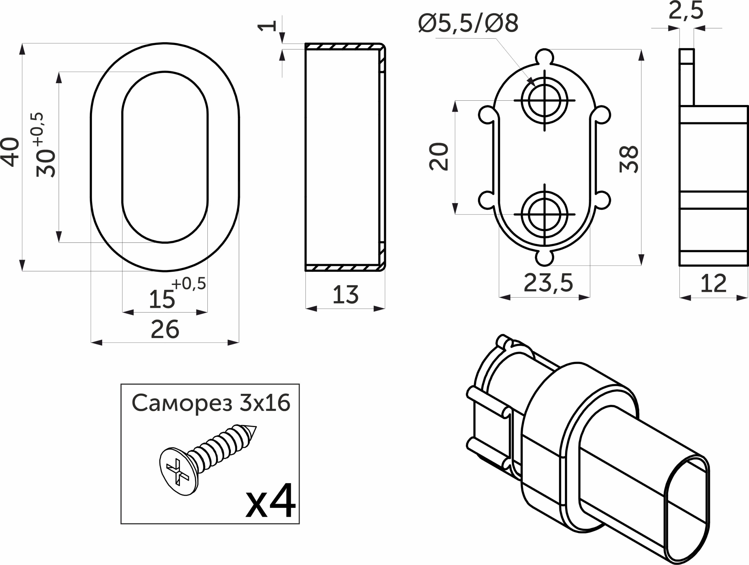 Предназначен для для монтажа трубы овальной 30*15 (гардеробной штанги) на боковые стенки шкафа и иные поверхности.
