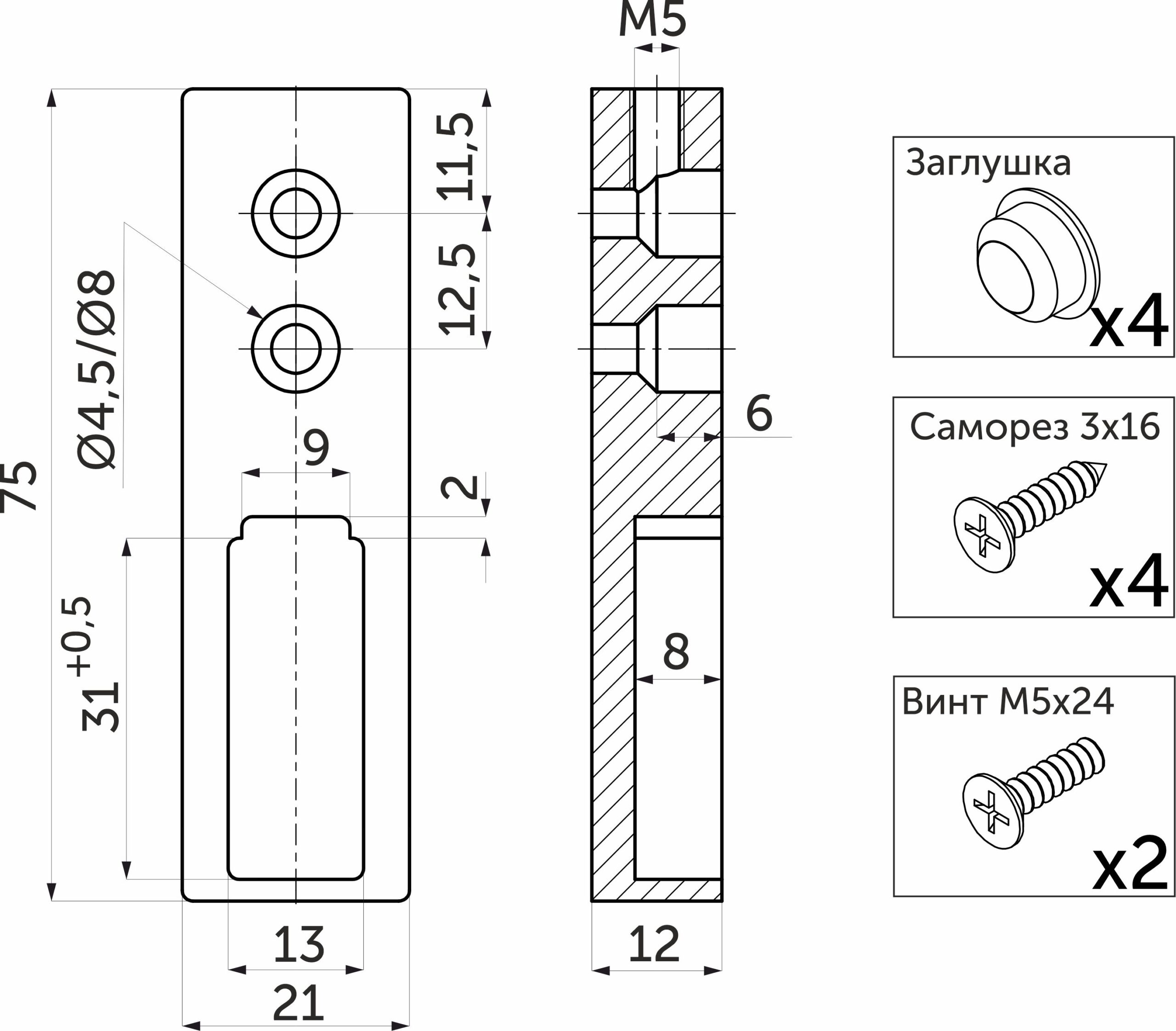 Держатель трубы прямоугольной
