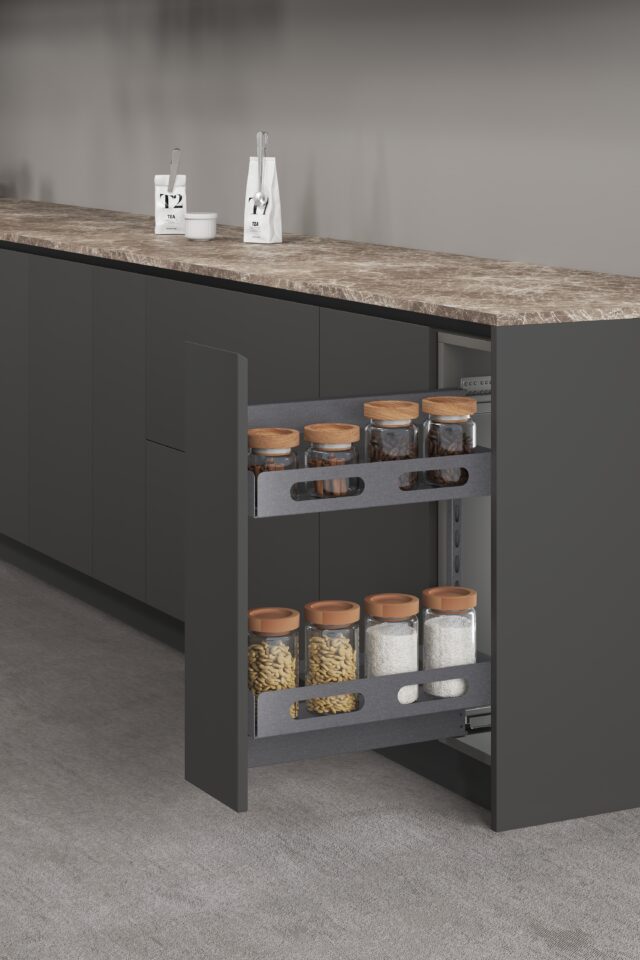 • Возможность установки корзин на разной высоте позволяет хранить емкости разного размера;