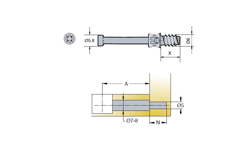 — диаметр сверления для тела дюбеля Ø7-8 мм;