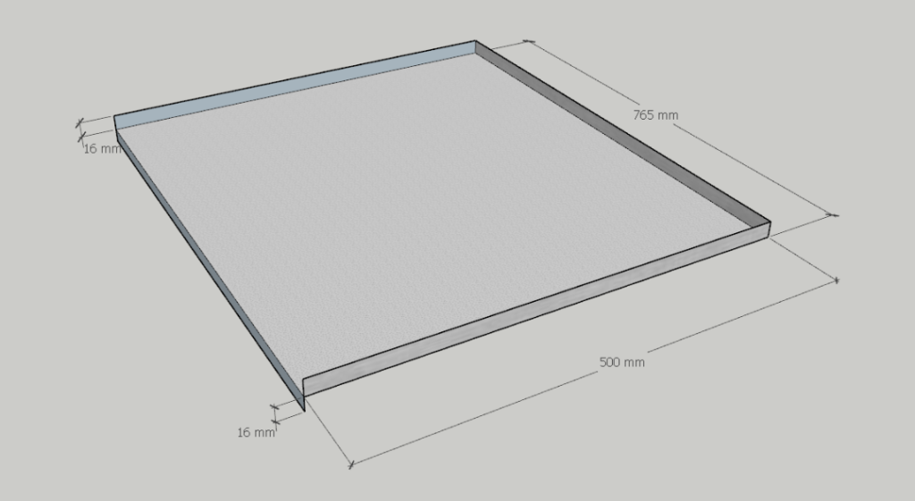 Поддоны выполнены из тисненого металла толщиной 0,45 мм. Благодаря такой толщине листа при установки гигиенического поддона под раковину обеспечивает необходимую жесткость и прочность при монтаже. Тиснение на алюминиевом поддоне обеспечивает удержание воды на плоскости поддона от протекания.