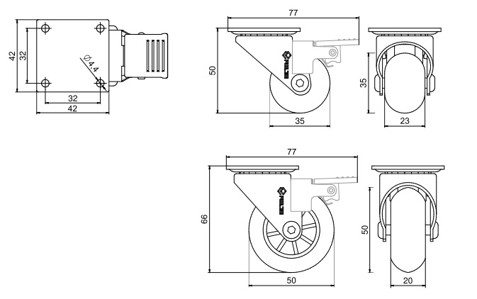 изготовлены из эластичного пластика, не повреждают поверхность полов и ковров; конструкция произведена из оцинкованной стали; благодаря подшипникам свободное вращение в горизонтальной плоскости на 360...