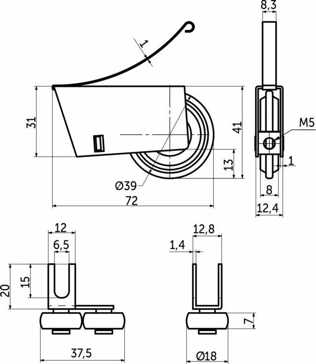 Для открытого профиля классической системы (Сенатор). Верхний и нижний ролик с подшипником. Материал: сталь, пластик. 2 нижних ролика, 2 верхних ролика, 4 самореза, 2 регулировочных винта. Цикл открывания: не менее 60 000. Толщина металла: 1,3 мм, закрытая обойма. Нагрузка на 1 дверь — 80 кг