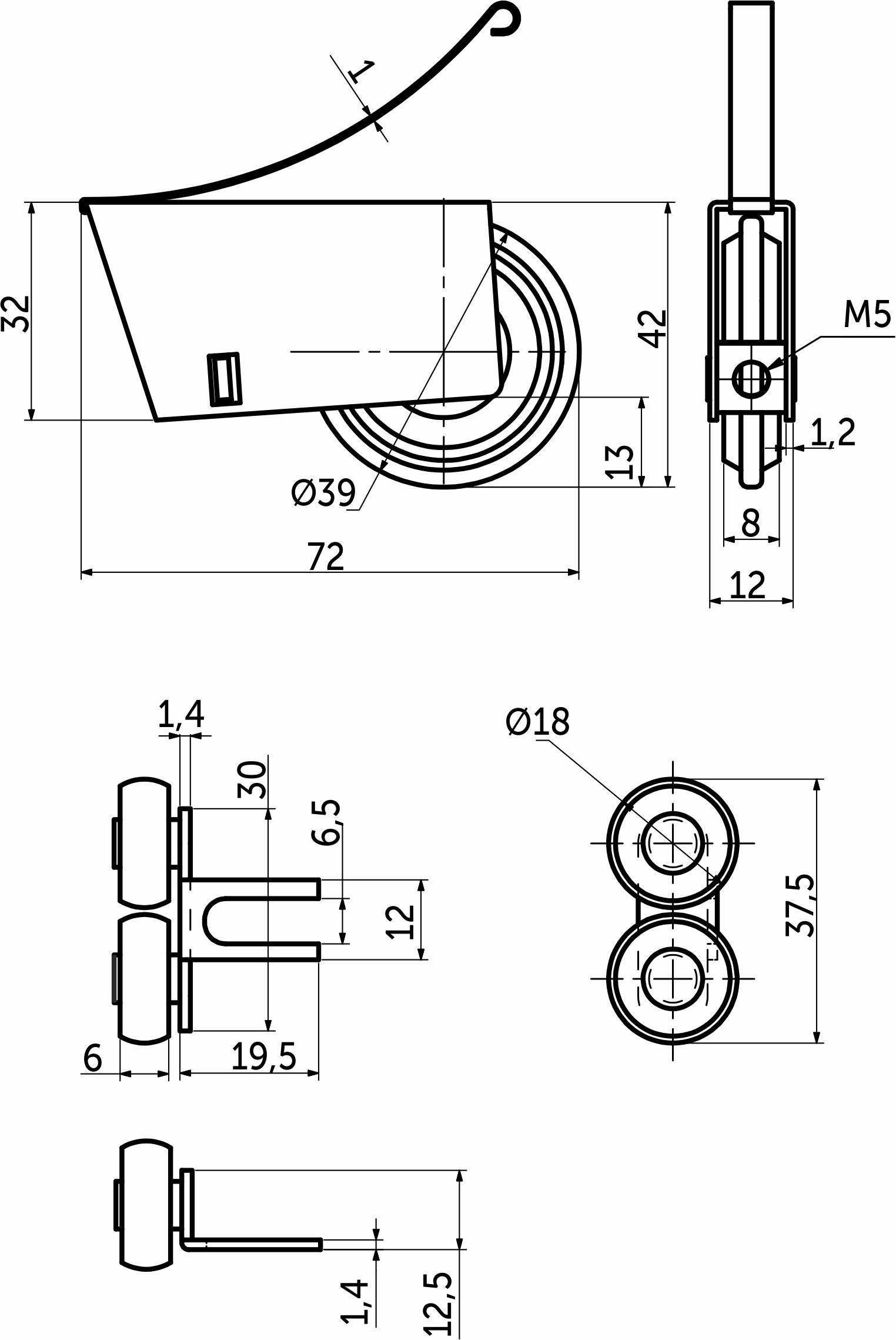 Комплект роликов СИММЕТР. закрытый для 1 раздвижной двери AKS PLUS 80 кг усиленные верхний подшипник