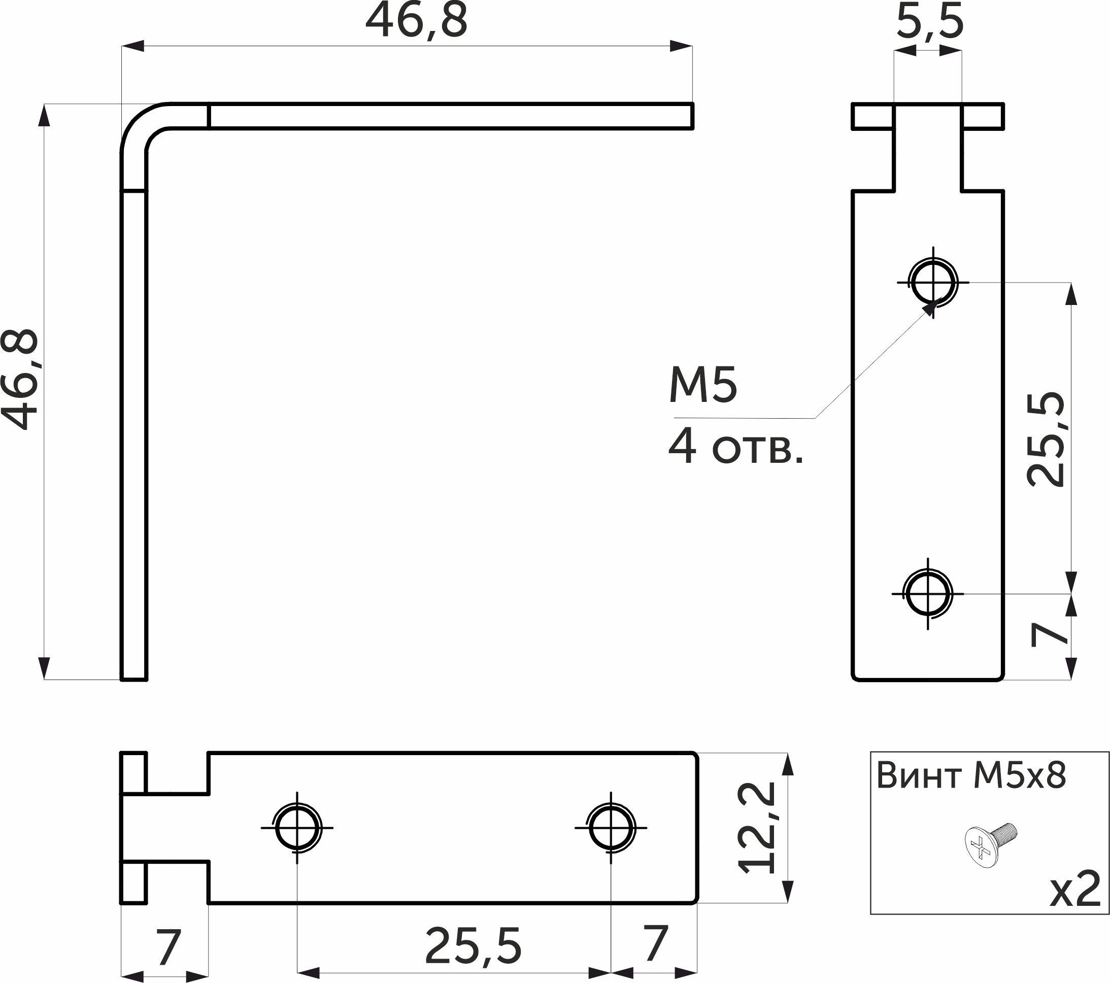 В комплекте — 2 винта М5х8.