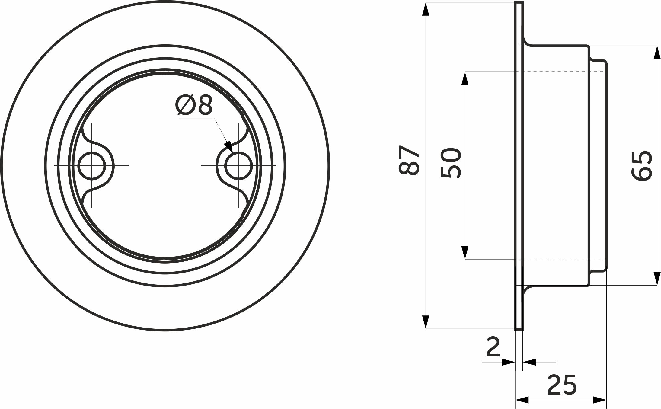 Крепление предназначено для фиксации трубы d50, все крепежи (отверстия, через которые фиксируют саморезами к поверхности) находятся внутри крепления.