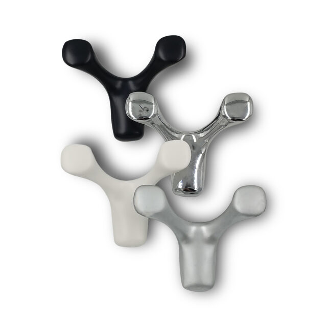 Глянцевые поверхности и «парящая» конструкция крючков EVA UFO гармонируют с интерьерами в духе хай-тека или индустриального лофта. В минималистичных пространствах они добавят динамику чистыми линиями и игрой светотени. Изготовлены из сплава zamak (цинк-алюминиевый литьевой материал), превосходящего чистый цинк по твёрдости и износостойкости.