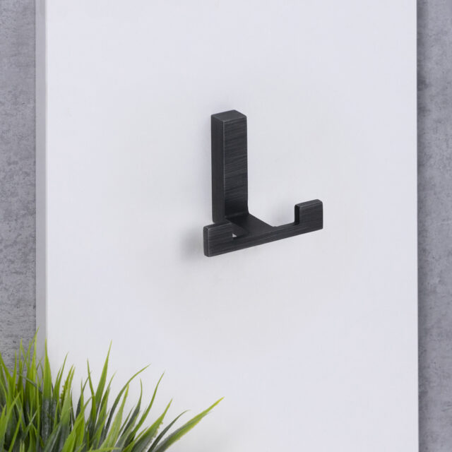 Металлический двухрожковый крючок. Этот современный аксессуар сочетает в себе строгие квадратные формы и минималистичный дизайн, идеальный для тех, кто предпочитает четкие линии и элегантность в каждо...