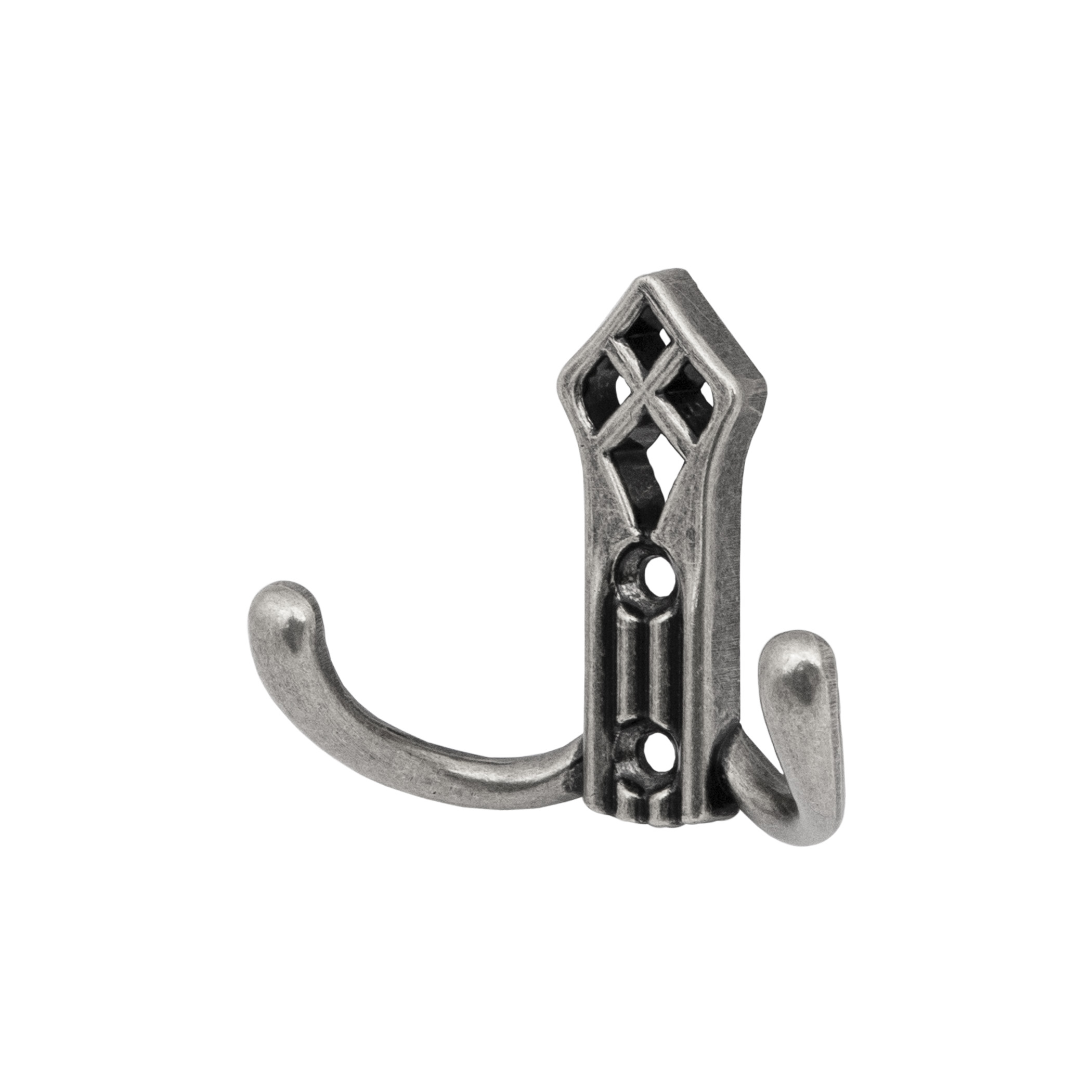 Крючок меб. двухрожковый мет. PALAZZO античное серебро AKS 81196