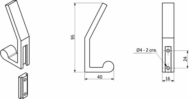 Крючок меб. двухрожковый мет. PEROLA графит AKS 104195