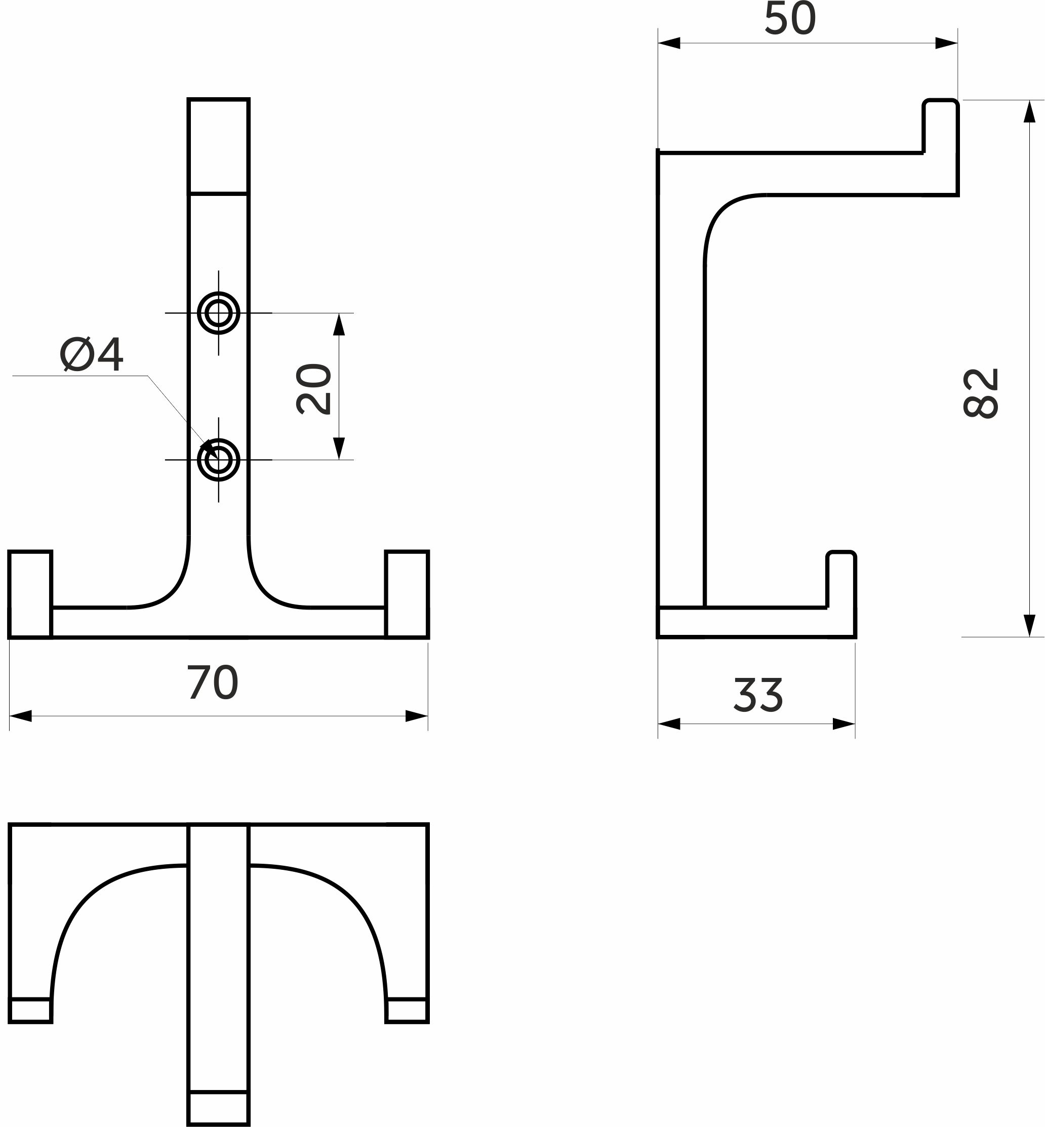 Трехрожковый металлический настенный крючок это компактное и удобное решение для организации хранения вашей одежды или других предметов в доме. Цвет матовый черный. Материал — цинк-алюминий. Крючок может использоваться как в гардеробных, так и ванной комнате. Крючок имеет стильный минималистичный дизайн, который подойдет практически к любому стилю интерьера. В нем сочетается элегантность и сила, которые цепляют взгляд. Габариты крючка 70*50*82мм, что позволит ему вписаться даже в небольшое пространство. Максимальная нагрузка на нижний крючок 20 кг, на верхний — 6 кг. Крепится с помощью саморезов. В комплекте 2 шурупа 4*18.