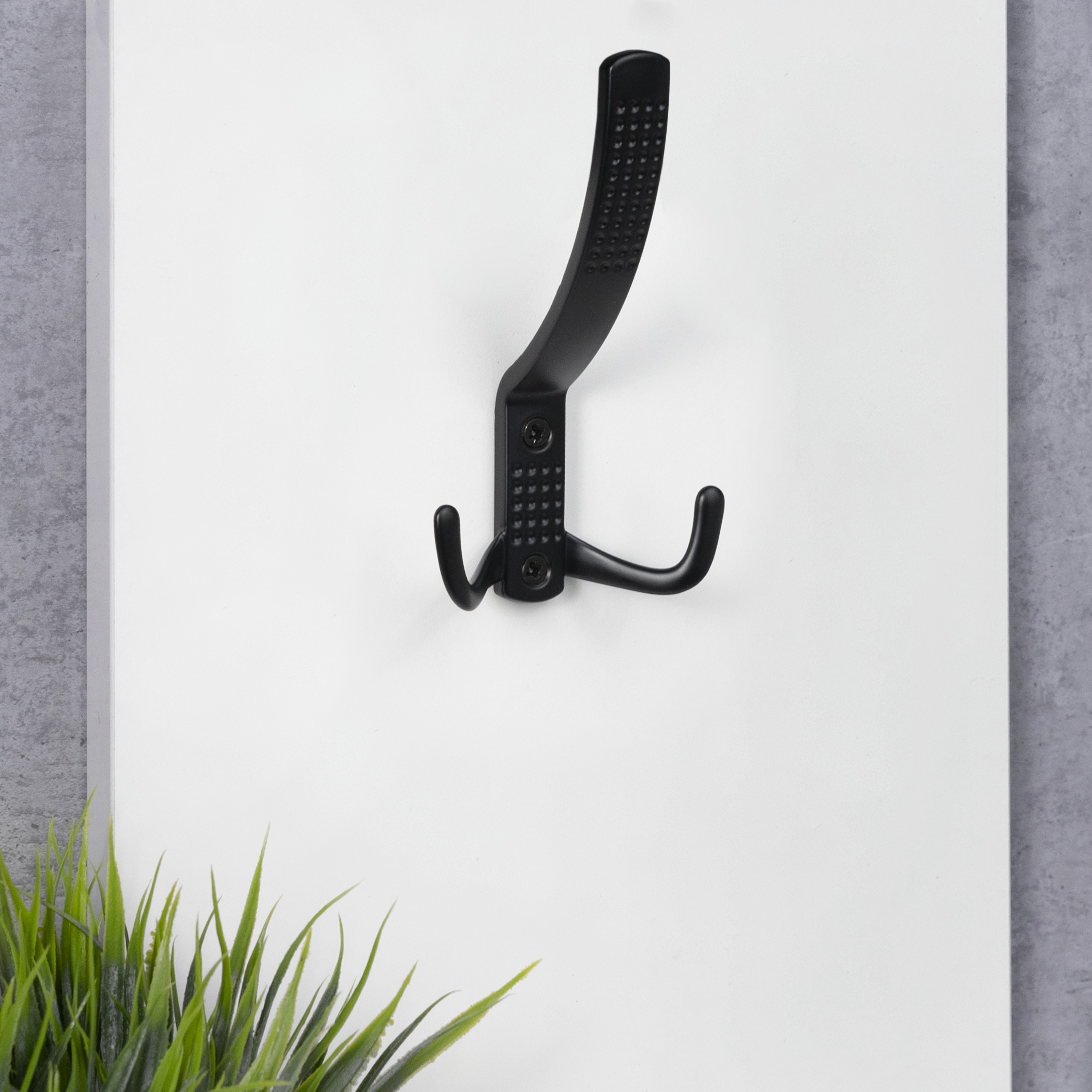 Трехрожковый металлический настенный крючок. Цвет черный.