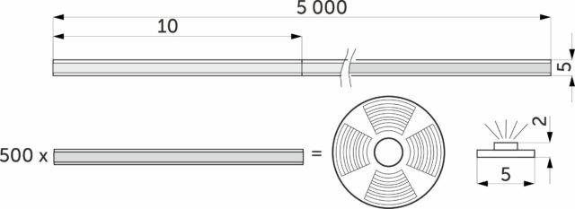 COB лента, количество диодов 400д/м, напряжение 12В, степень защиты IP20, мощность 12W/m, ширина 5 мм, холодный белый (6000K), CRI>90, 1000 Lm, узкая — 5м.