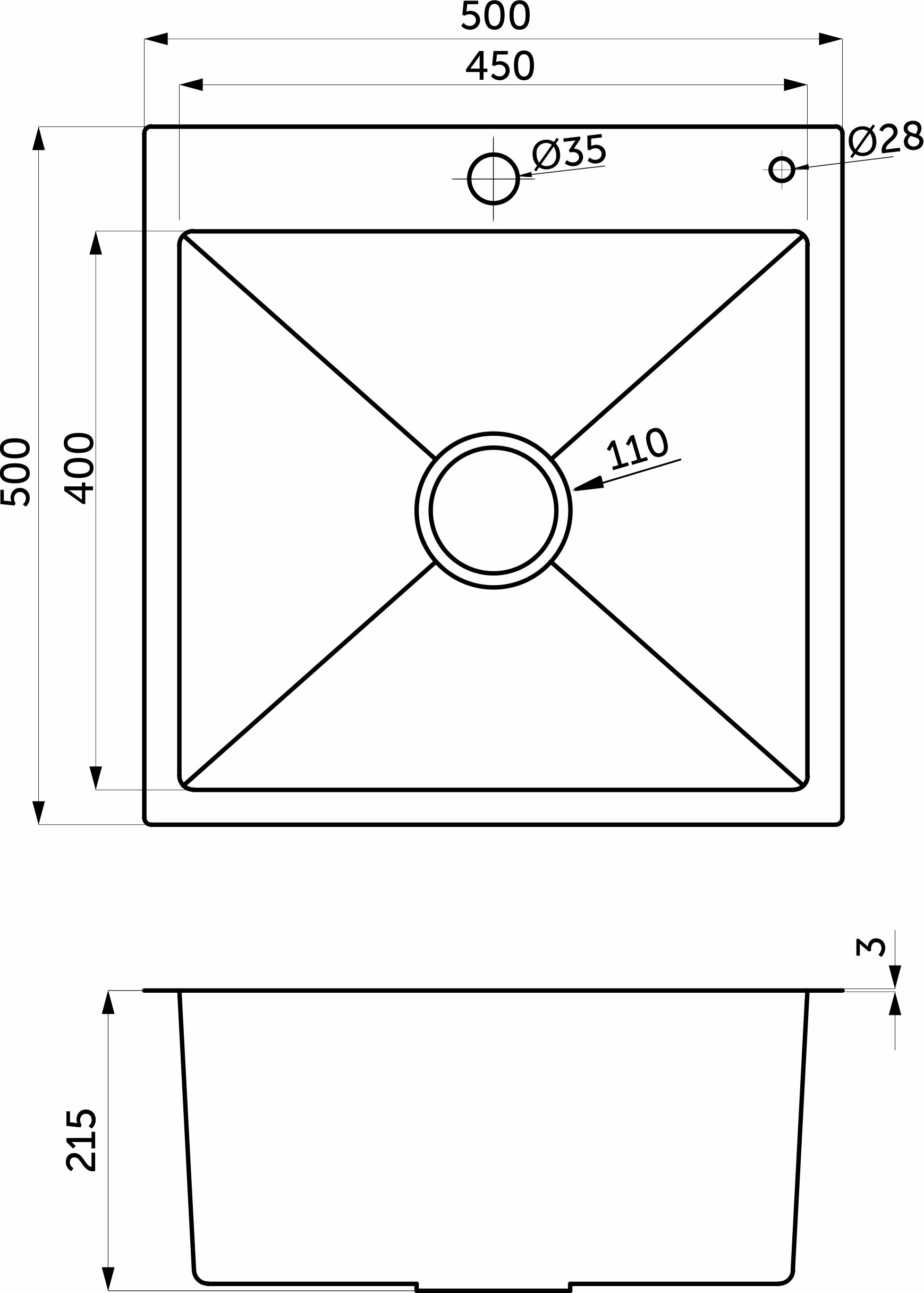 Глубина чаши: 215 мм;