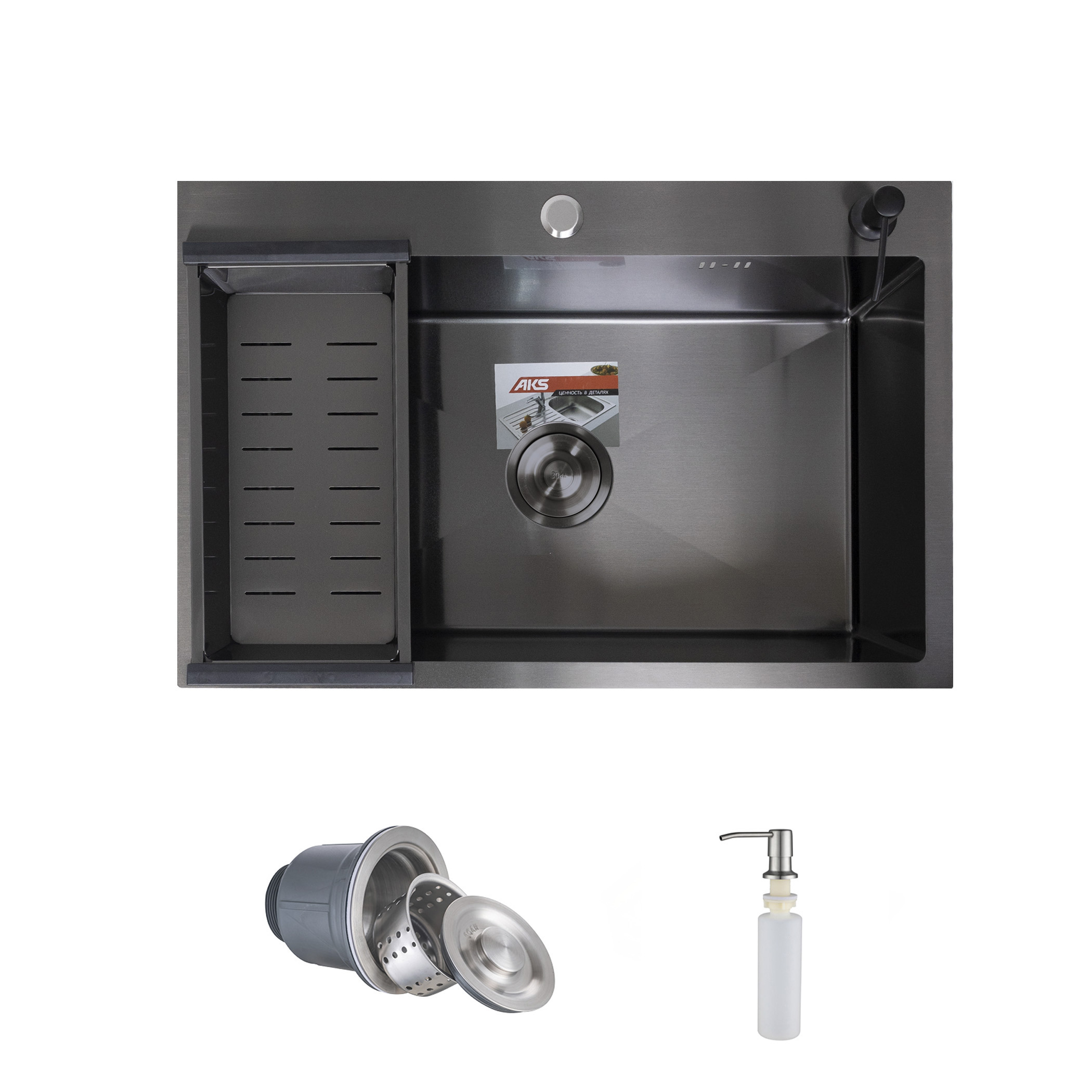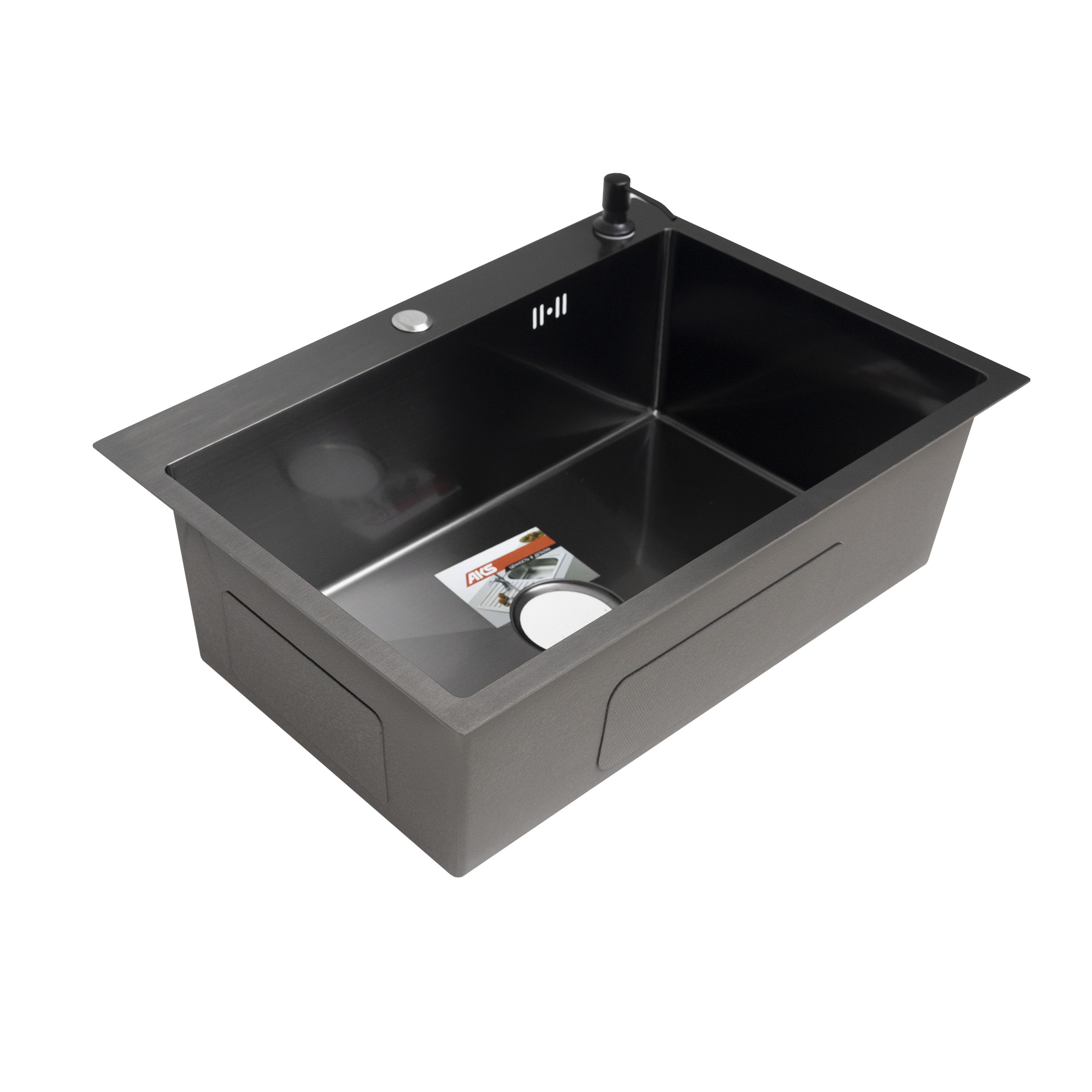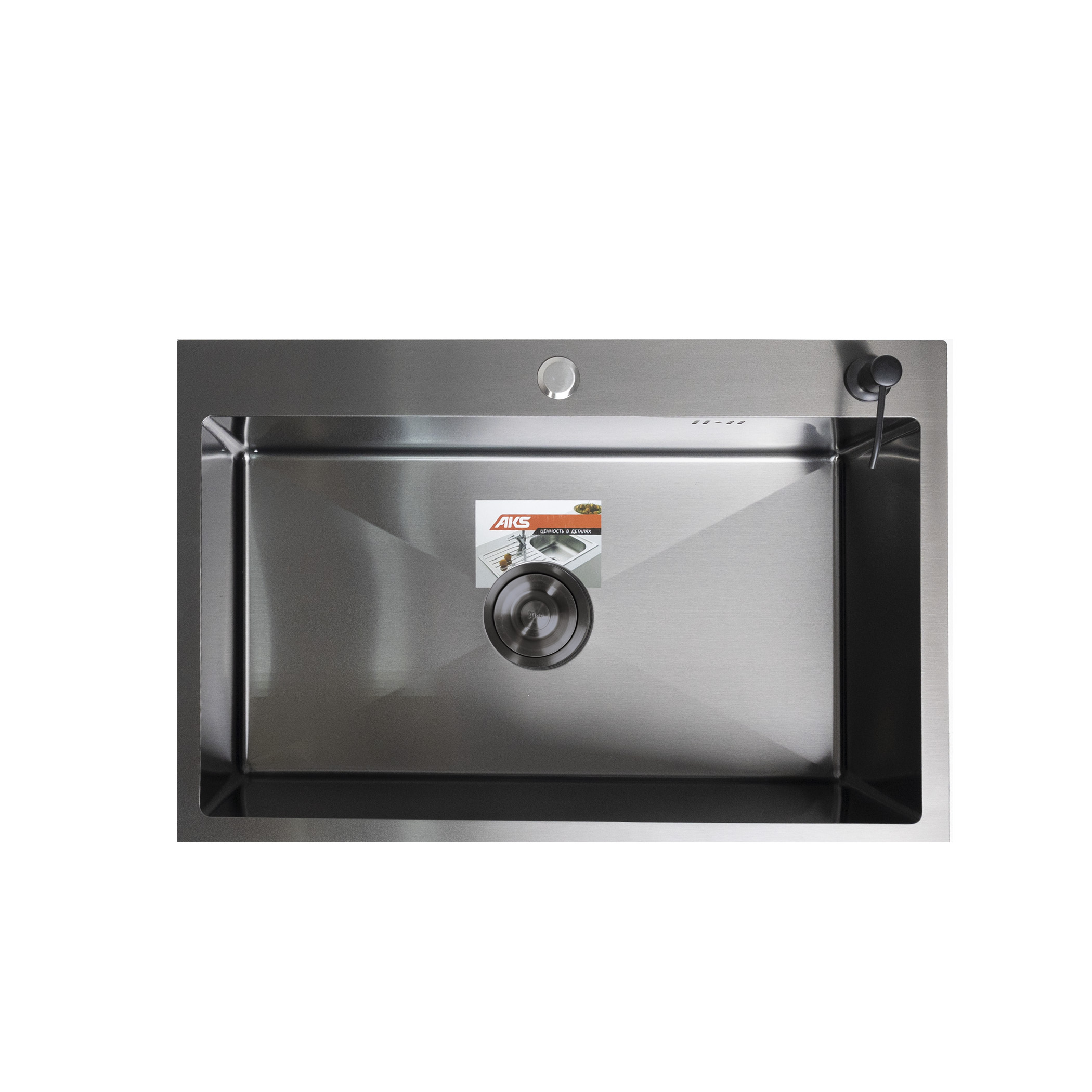 Мойка н/сталь, прямоугольная одночашевая, 700*460мм, черный, врезн на/вровень столешнице, AKS (3,2мм