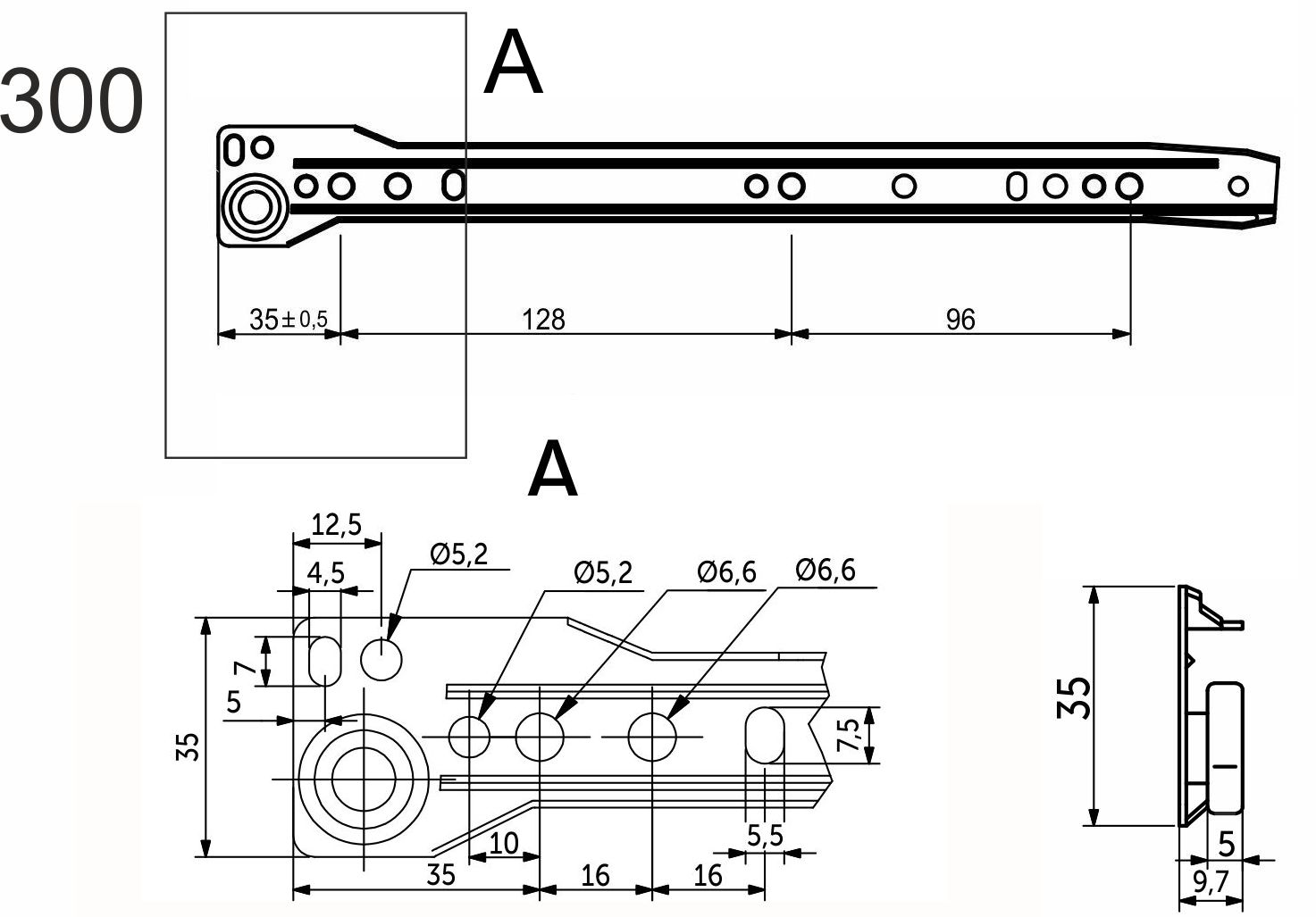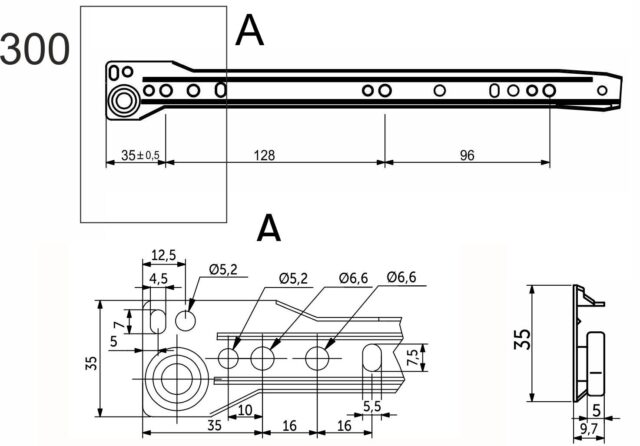 Направляющие роликовые для выдвижных ящиков мебели изготовлены из холоднокатаной стали. Толщина 1 мм с учетом покраски. Допустимая нагрузка: 15-25 кг. Направляющие неполного выдвижения с двойным фиксатором в закрытом положении и защитой от выкатывания. Форма профиля имеет дополнительное ребро жесткости — желоб. Материал ролика — POM.