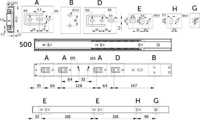 Данные направляющие широко применимы как дома, так и в офисах, коммерческих помещениях. Подойдёт для установки в шкафах и гардеробных, в консолях и тумбах, в письменных столах и комодах.