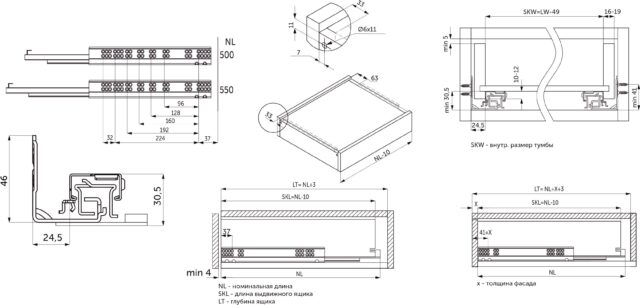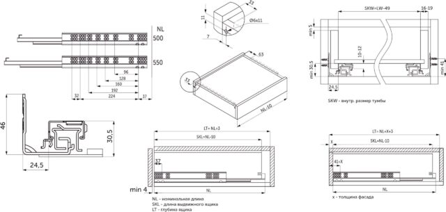 В комплект направляющих входит: направляющая — 2 шт (левая, правая), замок — 2 шт (левый, правый), механизм push-to-open – 2 шт, инструкция по установке — 1 шт.