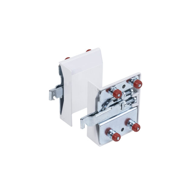 Материал: сталь + пластик. Нагрузка на пару — 240 кг. Возможность регулировки: высота +/-5 мм, глубина max 15 мм (при регулировке навеса нельзя использовать шуруповерт). Надёжно крепится на специальную монтажную планку со стальной пластиной, которая жёстко фиксирует крючок навеса и не допускает его смещения. Крепится к корпусу ящика на втулках под запрессовку плюс дополнительно фиксируется саморезами, что создает более надежное соединение. После монтажа корпус навеса и отверстие в задней стенке закрываются белыми заглушками.