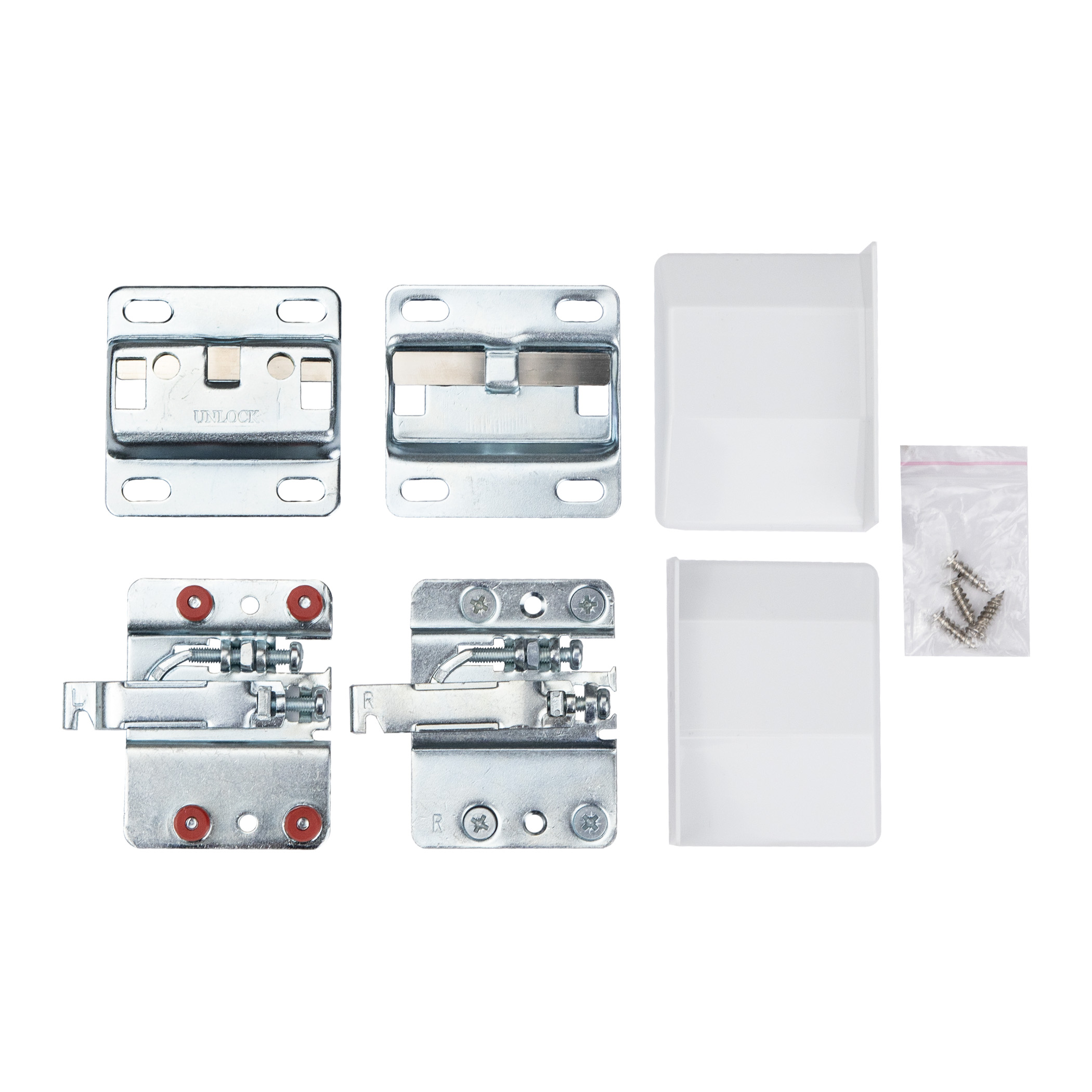 В комплект входят: 2 навеса, 2 монтажные планки, 2 заглушки белого цвета и комплект саморезов для крепления к корпусу ящика.