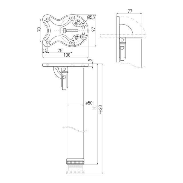 Опора 50х710 складная с верхним креплением, хром NM-F50710-01 15507