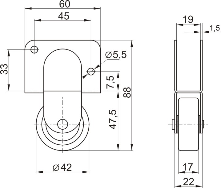 Опора колесная с резиновым колесом изготовлена из высококачественной стали, имеющей цинковое покрытие, что не только придает элементу эстетичный вид, но и увеличивает срок службы. Колесо изготовлено из пластмассы с резиновым ободом, что смягчает ход колеса, не оставляя следов на напольном покрытии. Ступица колеса изготовляется из полипропилена.