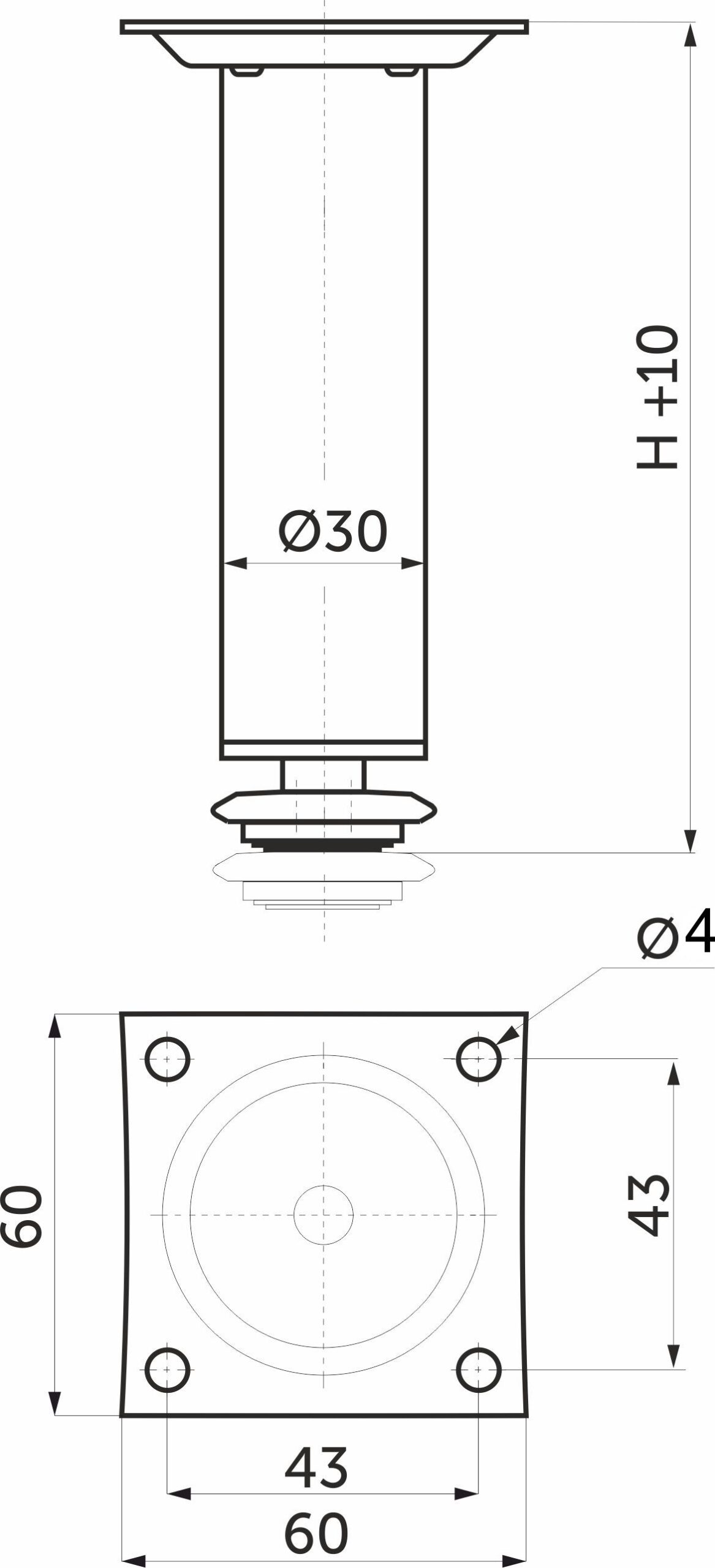Опора меб. мет. D-150 h150 с регул. черный матовый AKS 112792
