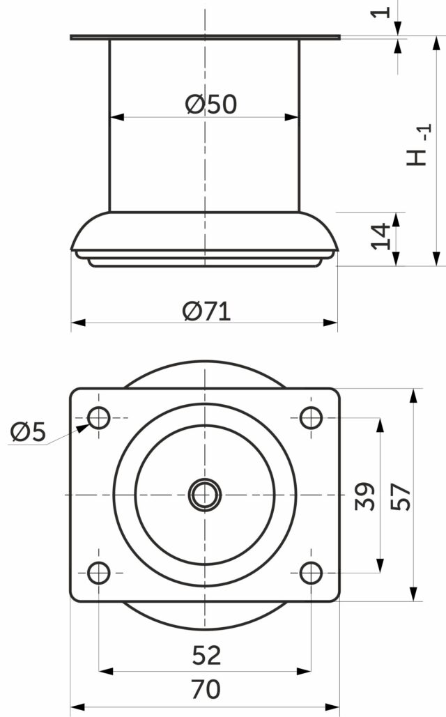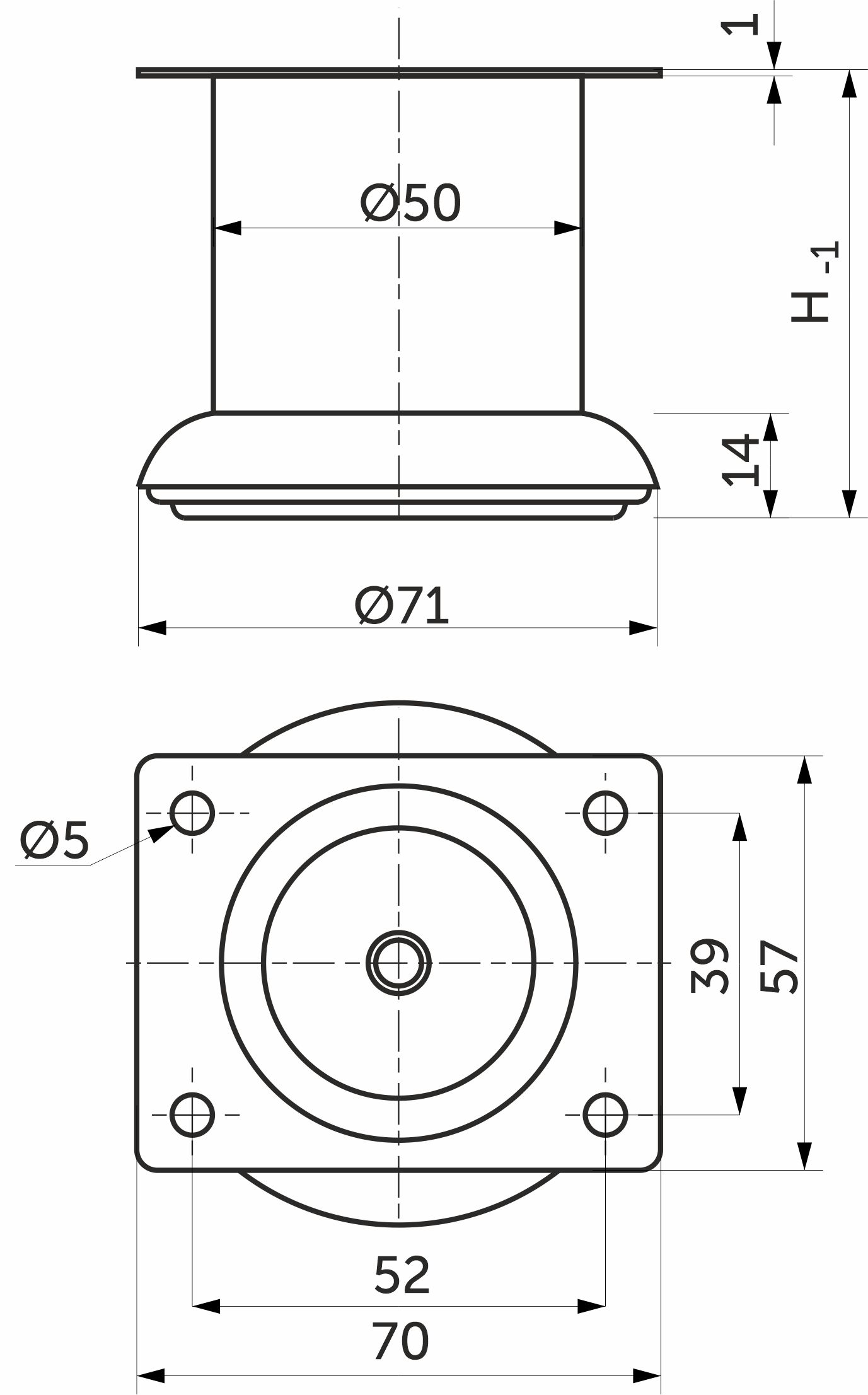Опора меб. мет. TB019 (B140) d50 h80 хром AKS 115526