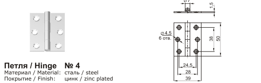 Петля карточная 50*40, цинк 1212008