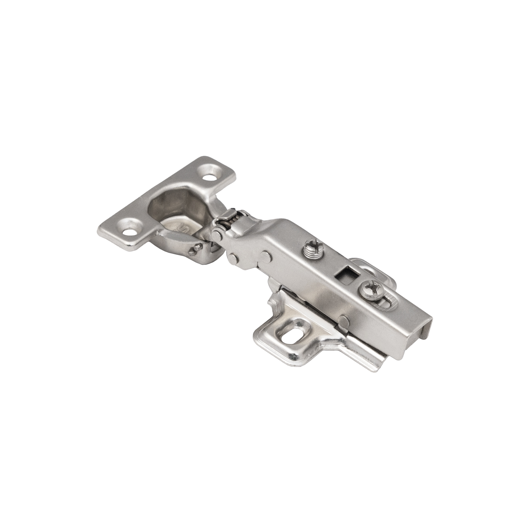 Петля мини накладная с доводчиком выполнена из холоднокатаной стали. Чашка 26 мм. Имеет механизм быстрого монтажа clip on и регулировочный винт с размером по резьбе в 10 мм. Высота ответной планки H=0 мм. Петля накладная мини предназначена для установки на фасад с перекрытием всех стенок корпуса примыкания к фасаду.