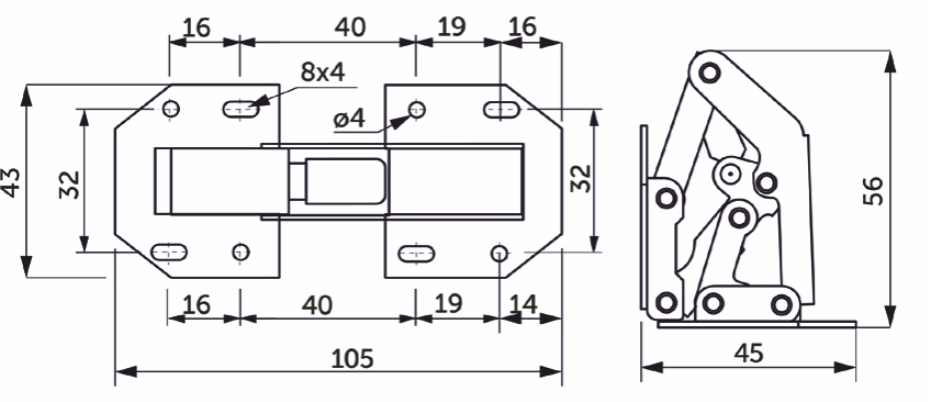 Петля поршневая универсальная для открытия фасада на 90 градусов. Может быть как накладная, так и внутренняя. Из особенностей, данная петля не требует фрезеровки для её установки.