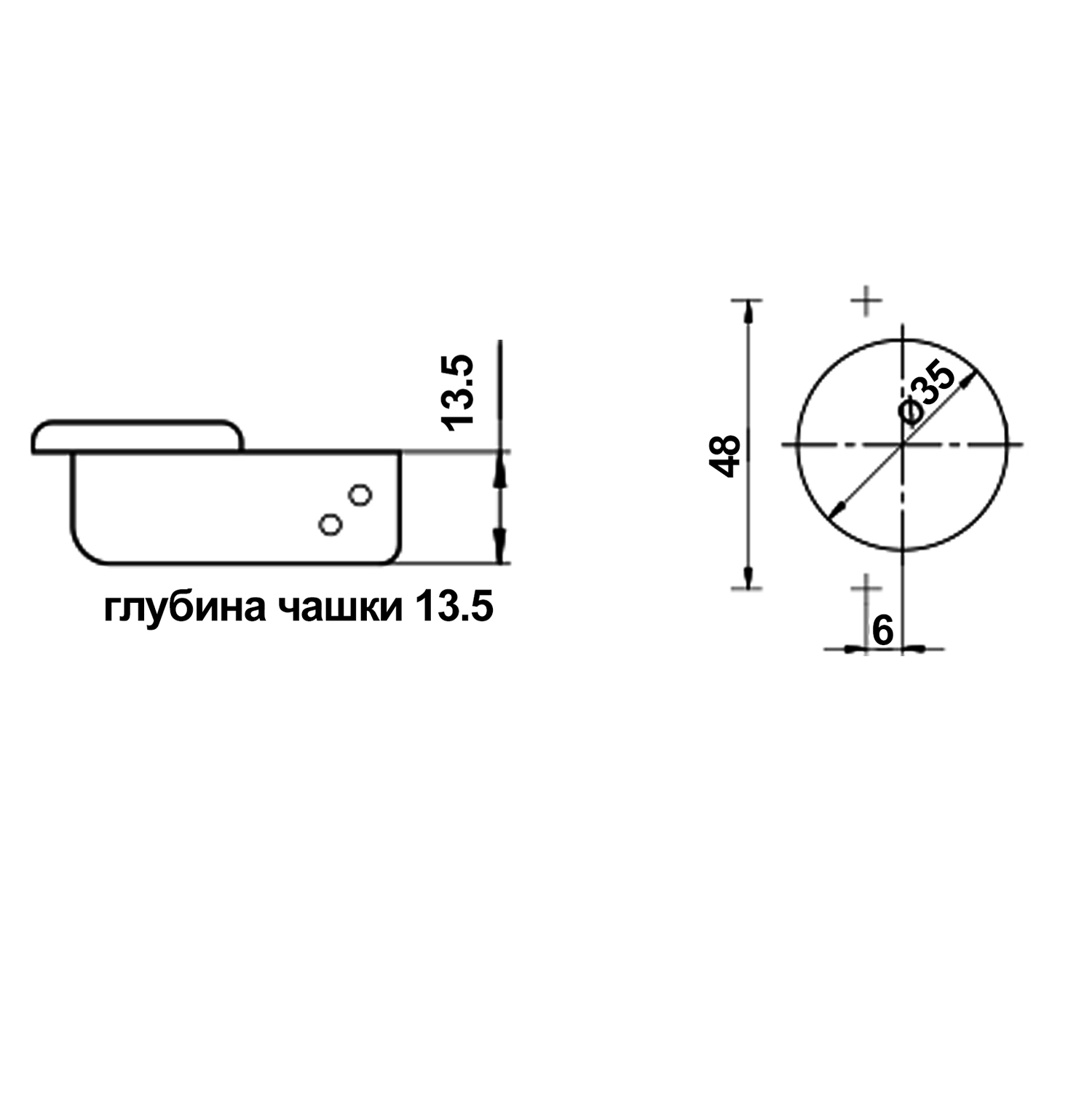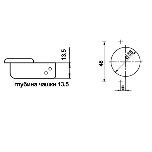 • Глубина чашки — 13,5 мм;