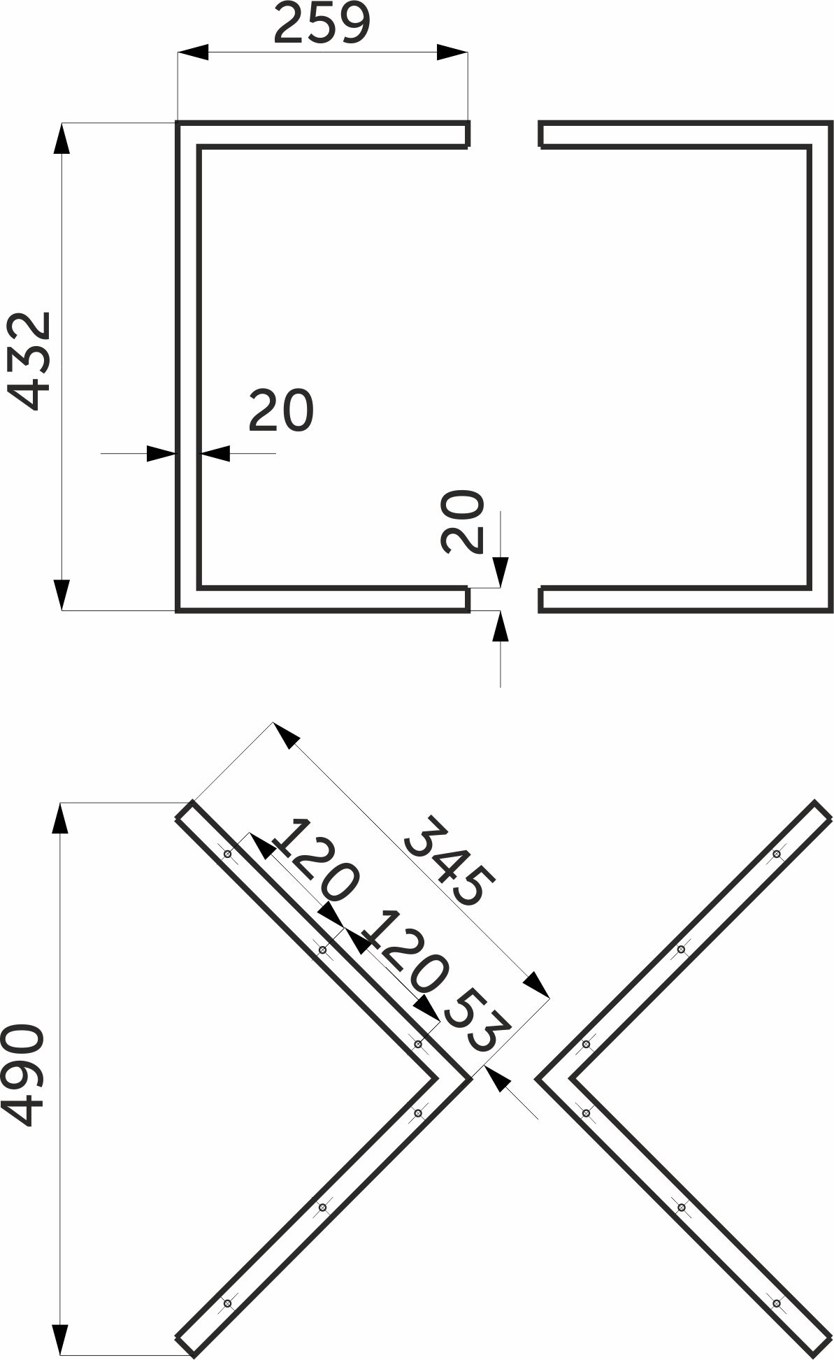 Подстолье изготовлено из металлического профиля 20*20мм. Толщина профиля 1,5мм.