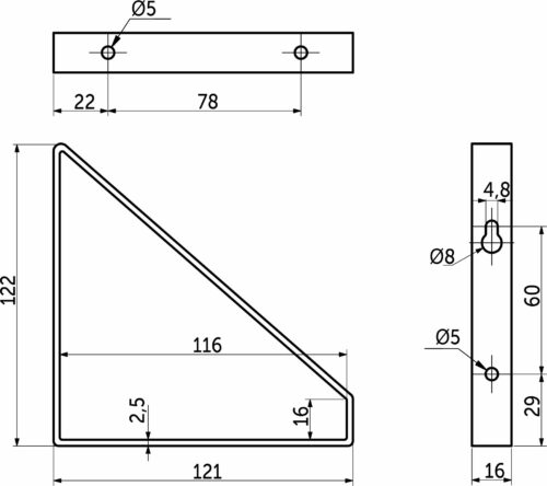 Полкодержатель мет. DALI 122*121*16*2,5 черный AKS 90145