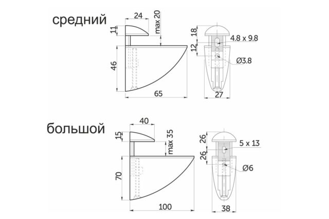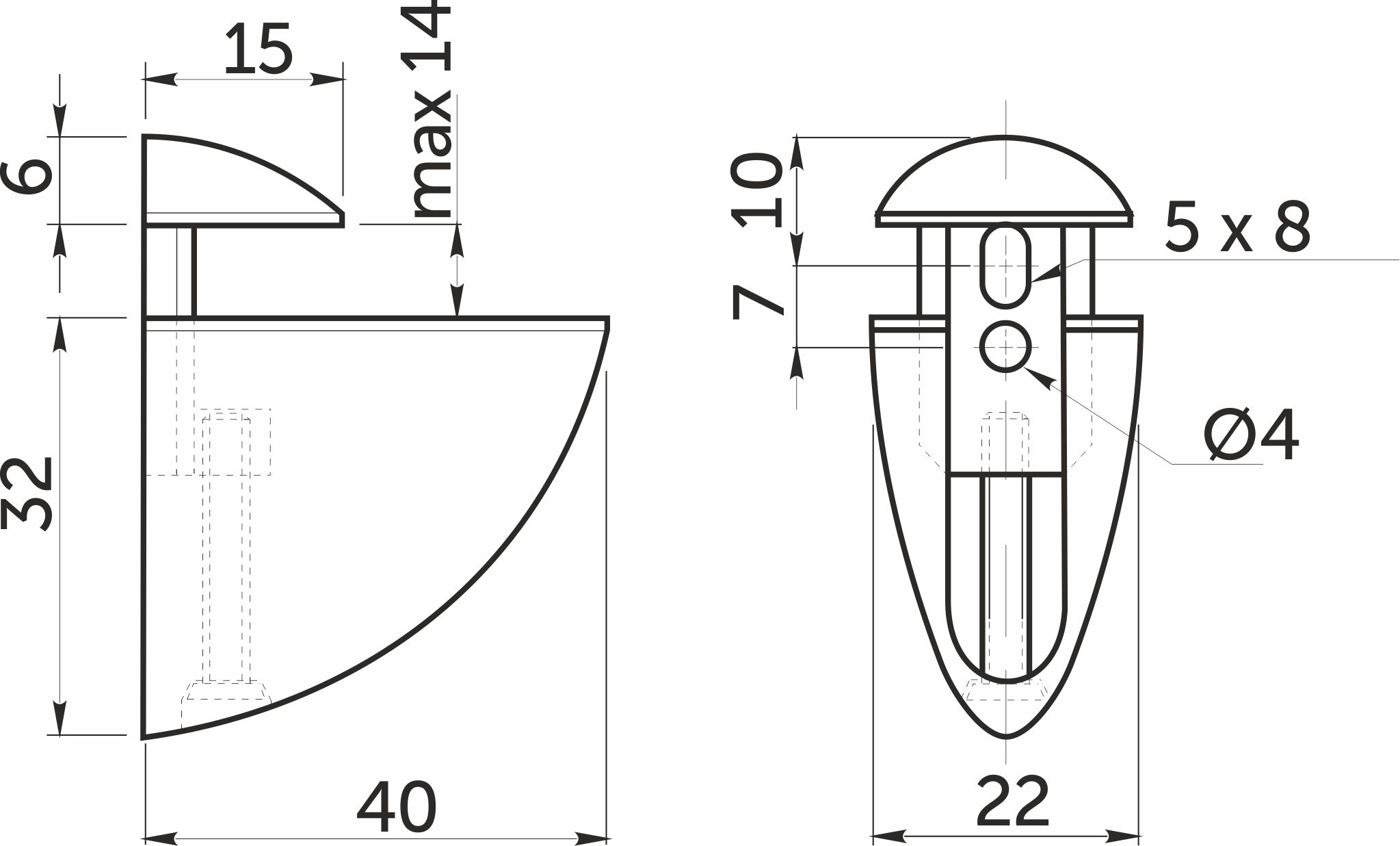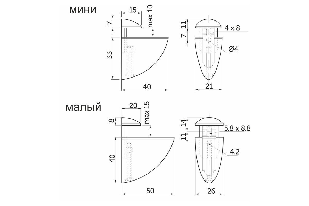 Универсальное приспособление для установки полок из различных материалов. Полкодержатели закрепляются на стене или мебельной стенке при помощи дюбелей и саморезов. Полка фиксируется посредством регулировочного винта внизу держателя.