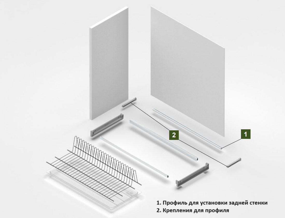 для установки в шкаф без дна, дополнительно приобретается задний профиль и кронштейны для крепления