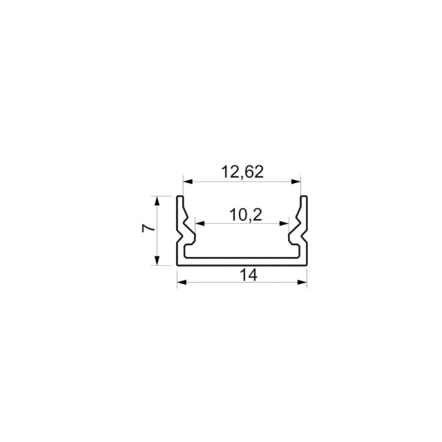 Накладной профиль, ширина 14 мм, высота 7 мм, матовый экран, длина 3м., внутренняя часть вмещает ленту шириной до 10 мм, цвет белый.