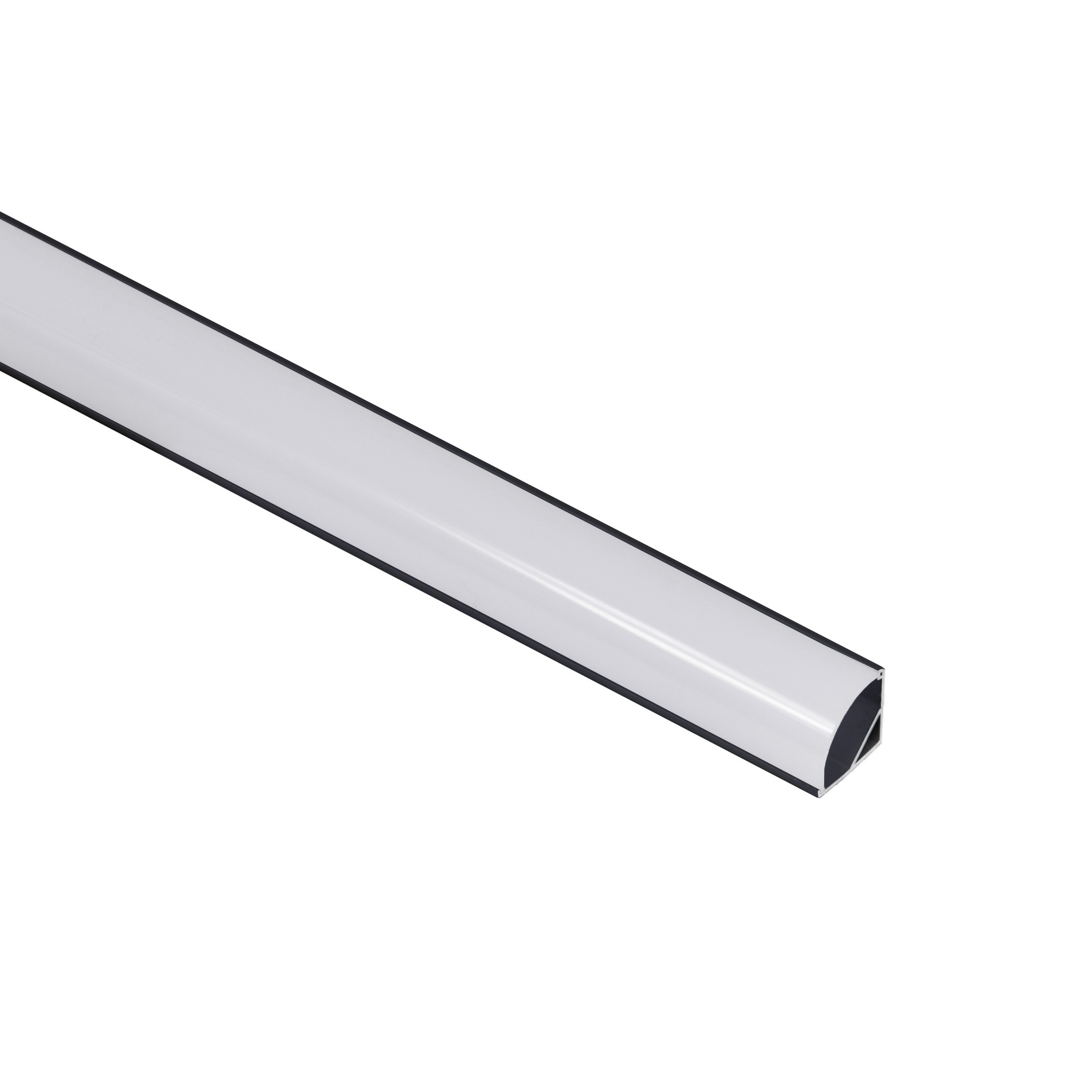 люминиевый накладной угловой профиль. Длина 3 метра. Матовый экран полукруглой формы. Ширина / высота — 16мм/16мм. Внутренняя часть вмещает ленту шириной до 10 мм.