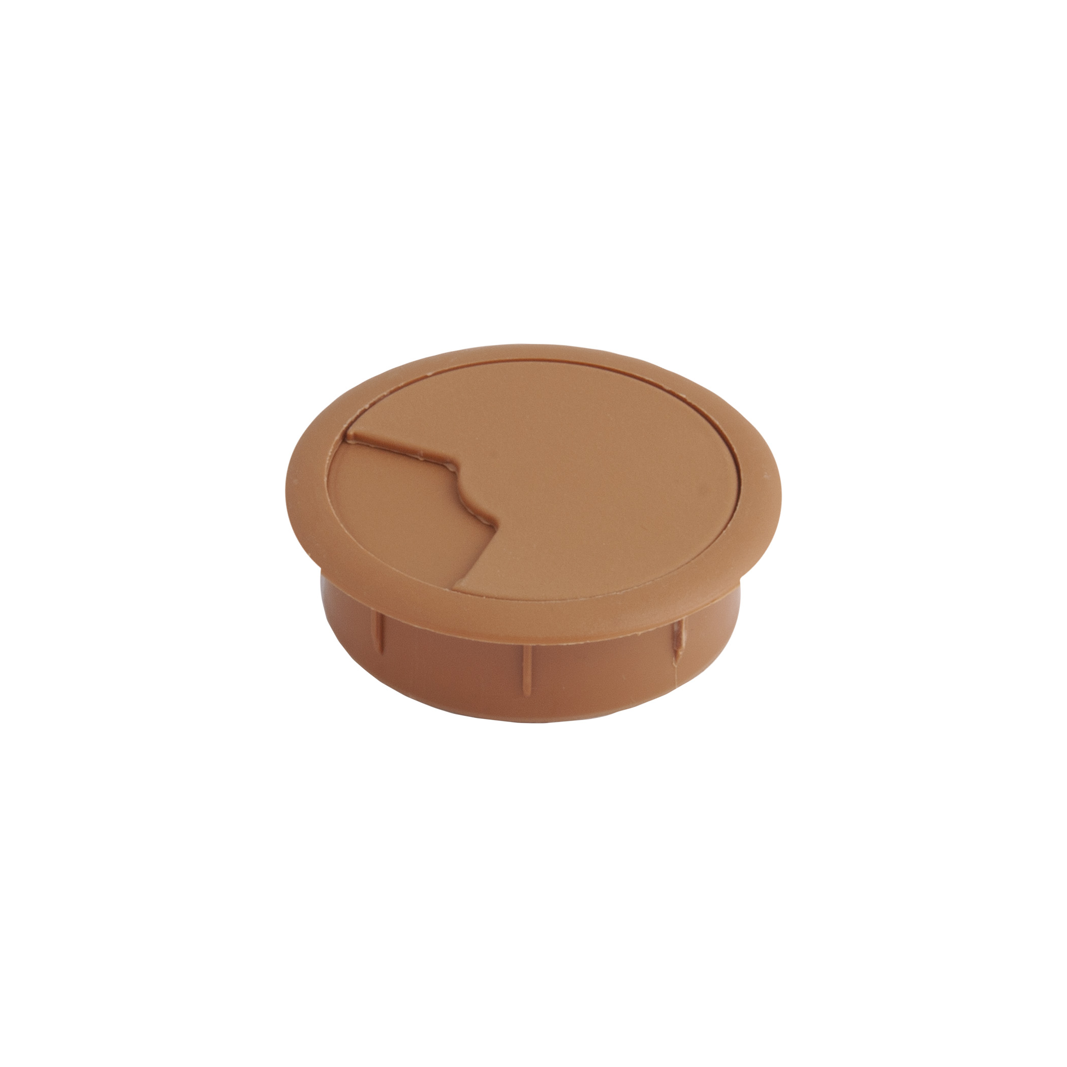Пропуск кабельный пластиковый врезной. Габаритный диаметр изделия 70мм, размеры отверстия в столешнице — d60мм. Внутри пропуска есть съемная крышка, которая частично либо полностью закрывает отверстие для кабеля.