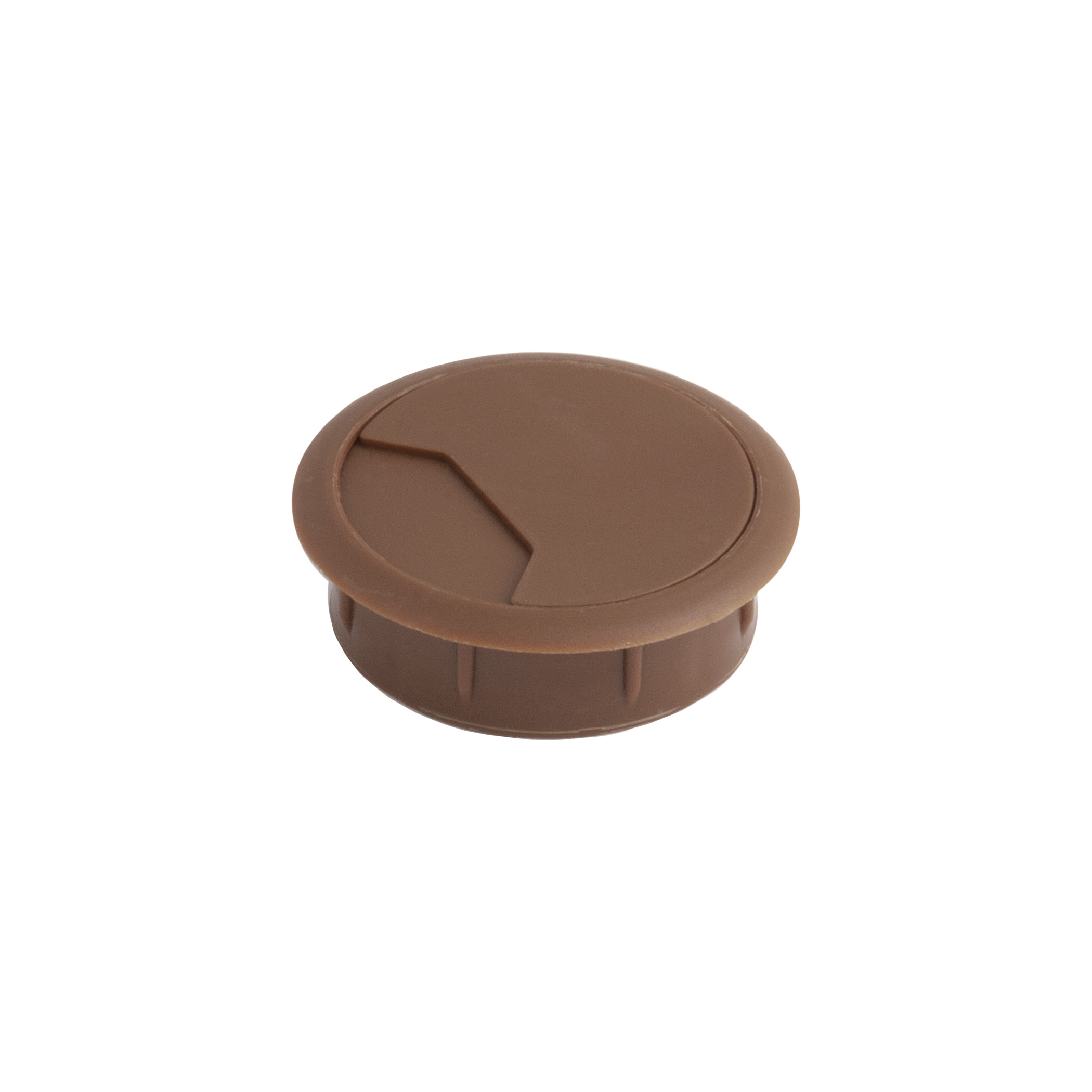 Пропуск кабельный пластиковый врезной. Габаритный диаметр изделия 70мм, размеры отверстия в столешнице — d60мм. Внутри пропуска есть съемная крышка, которая частично либо полностью закрывает отверстие для кабеля.