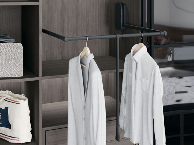 Пантограф или лифт для одежды используется в шкафах-купе для хранения одежды на «втором этаже». Идеальный вариант для высоких шкафов.