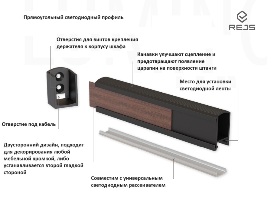 Прямоугольная штанга LUMINO предназначена для лент шириной до 10мм совместима с универсальным рассеивателем Lumino одна сторона штанги гладкая, на второй предусмотрен паз для установки кромки шириной ...